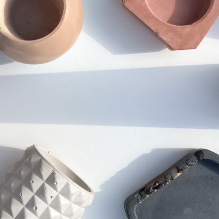 My hope is for you to fall in love with your concrete piece, to feature it in your home as a functional work of art. Every piece I create reflects my passion for structured silhouettes, texture and color, art, and nature. Verve Artistry is a woman-owned business. All items are handcrafted in small batches, using a handmade blend of cements and pigments for added color. No two pieces are alike.